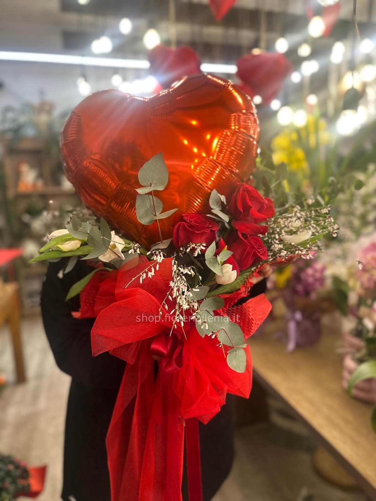 Il nostro mazzo, arricchito da un romantico palloncino a forma di cuore rosso, è perfetto per ogni occasione speciale.